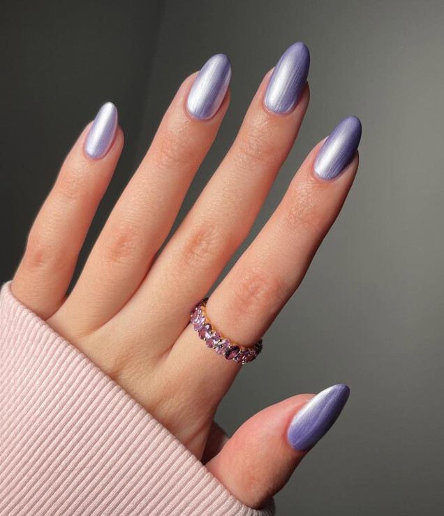 виолетов маникюр металик
