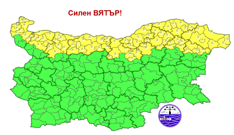 ????️ Жълт код за силен вятър в 10 области