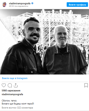Владимир Ампов-Графа се сбогува с баща си с емоционален пост в социалната мрежа. "Сбогом, татко! Винаги ще бъдеш моят герой!", написа изпълнителят в профила си в социалната мрежа.
