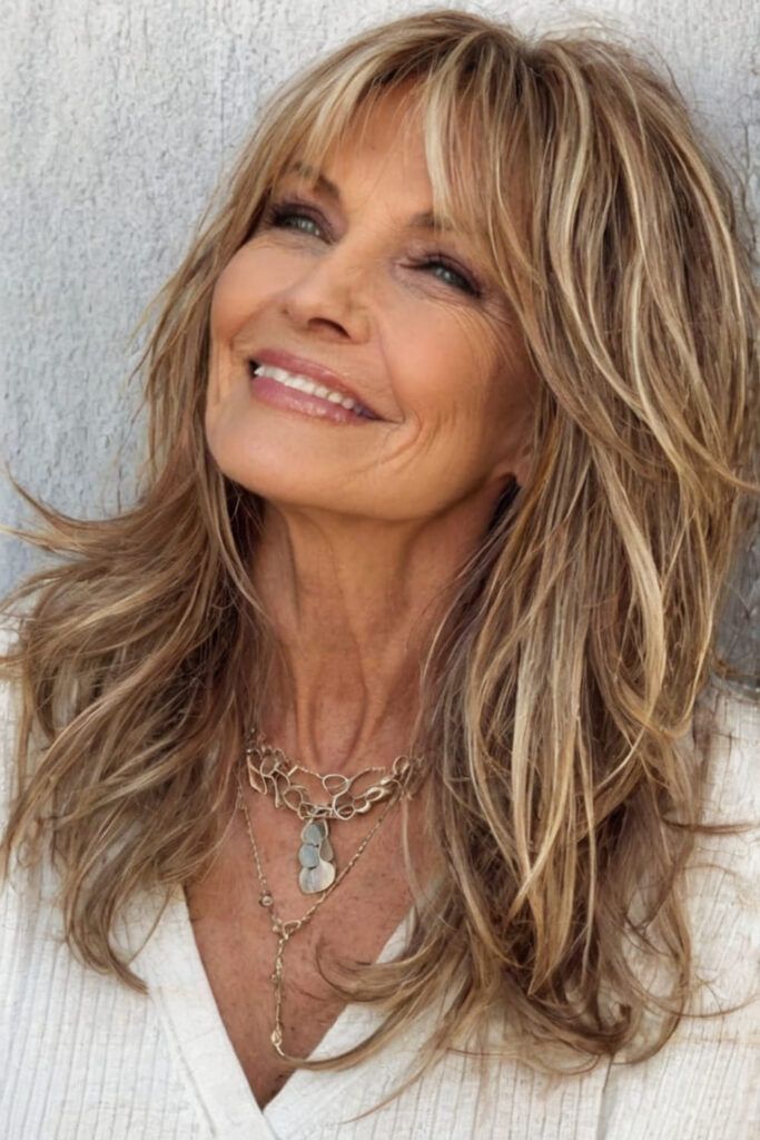 Дългата вълниста, напластена коса може да бъде чудесен избор. Въпреки че има мнение, че дългата коса при зрелите жени изглежда като опит за „освежаване на годините“, фризьорите казват, че вълните всъщност омекотяват чертите на лицето, които с времето стават по-изразени.