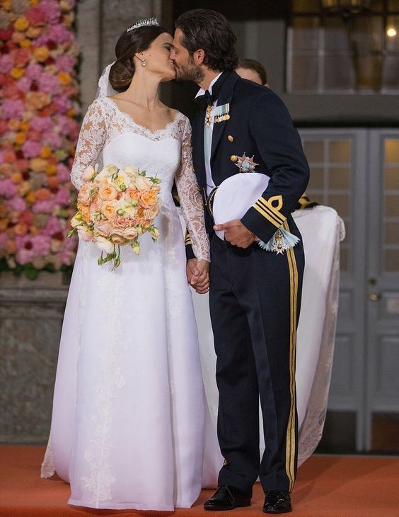 Когато единственият син на крал Карл Густав и кралица Силвия, принц Филип, се ожени през 2015 г., булката му София тръгна по олтара в красива бяла рокля от шведската дизайнерка Ида Сьостед с шлейф, дантелени ръкави и леко спуснати рамене.