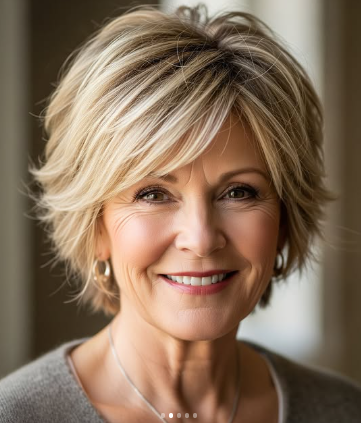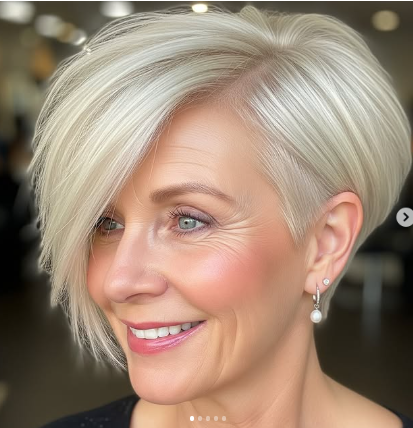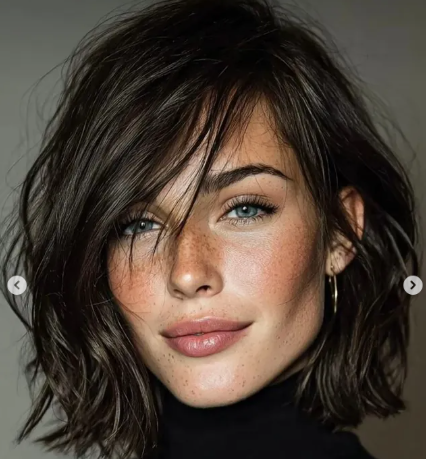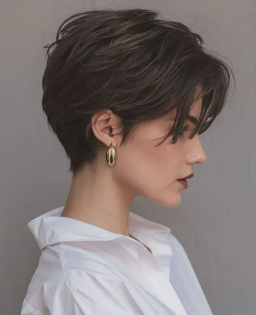След 40-годишна възраст косата обикновено губи плътност в корените и блясък по цялата дължина . По-късата прическа намалява теглото, позволявайки връщане на естествения обем и изсветляване на контурите на лицето. Откритите шия и скули визуално удължават силуета, докато контролираните, меки пластове отвличат вниманието от фините асиметрии. Елегантността тук не е скованост, а форма, която издържа през целия ден.