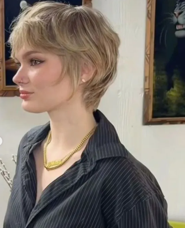 Класическа пикси прическа с по-дълъг връх и зализани страни придава най-голям повдигащ ефект, стига бакенбардите да се поддържат чисти, а бретонът да не завършва с остър бретон по средата на челото.