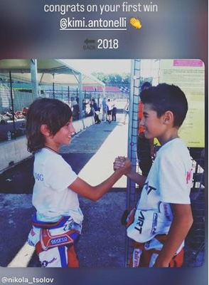 Никола Цолов поздрави 19-годишният Андреа Кими Антонели, момчето, което като пилот на "Мерцедес", той триумфира в Гран при на Китай, оставяйки зад себе си съотборника си Джордж Ръсел и Люис Хамилтън с "Ферари". Нашият пилот пусна снимка с набора си Антонели, на която двамата са на пистата още, като деца.