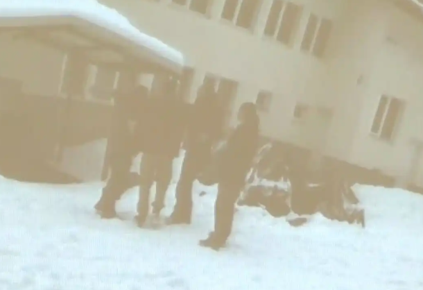 От камерите, които се виждат на самото място, това е в 10 часа на 01.02 - неделя, вижда т се три от лицата с червеното яке е ръководителя, а този който е встрани е непълнолетното лице. Има трето лице, което липсва от тази камера. На този запис виждаме как ръководителя си взима сбогом с трите мъртви лица на територията на хижата. Вдясно се вижда кемпера, с който малко след като си взимат сбогом се качват на него и напускат рйона на Петрохан.