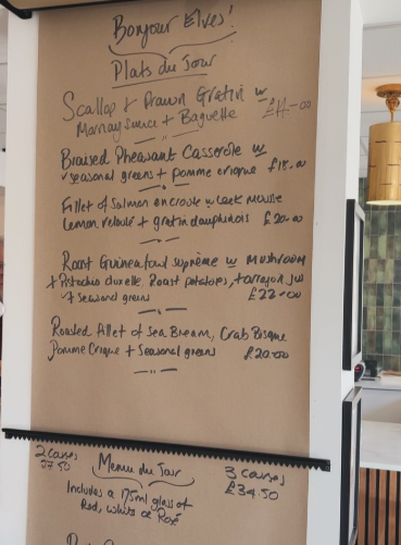 Менюто включвало класически френски специалитети като говеждо по бургиньон, охлюви в масло, суфле и палачинки, а цените, според британските медии, били изненадващо достъпни – под 22 паунда на ястие.