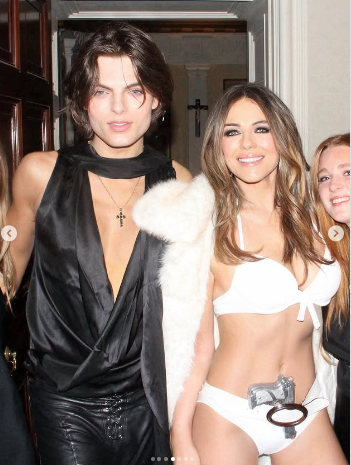 По време на партито Елизабет изглеждаше в страхотно настроение и към нея се присъединиха приятелите ѝ и сина ѝ, режисьора Деймиън Хърли (23). Между другото, актрисата и Били Рей прекараха първата си Коледа заедно, в компанията на сина ѝ Деймиън. Елизабет сподели и няколко снимки, на които е влюбен с Били Рей преди Нова година, давайки на феновете поглед към празничните им тържества.