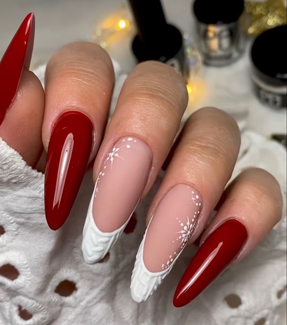 Червен коледен маникюр - вълшебни идеи (Снимки):