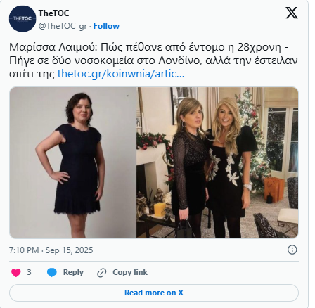 Майка ѝ, Беси, заяви пред гръцки медии, че причината за смъртта е токсичен шок, причинен от ухапване от насекомо, въпреки че самата причина за ухапването все още е неизвестна.