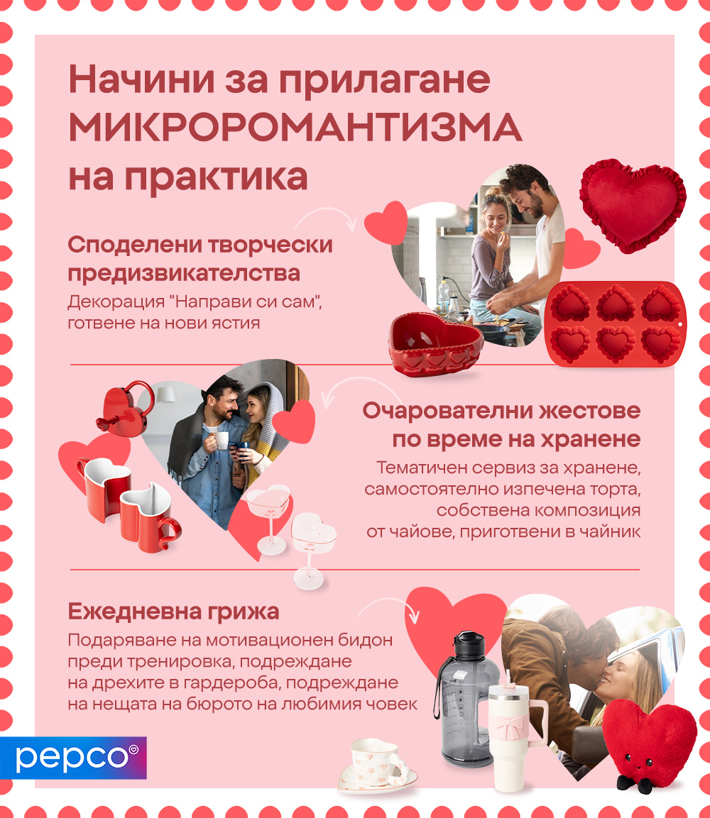 Любовта е чувство, което изисква постоянно да се вглеждаме в нуждите на другия човек. Понякога е достатъчен малък предмет или жест, за да й достави удоволствие и да предизвика вълнение. Въпреки че любовта не може да се пресметне в пари, има неща, които могат да ви помогнат да празнувате микроромантизма всеки ден.