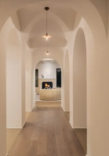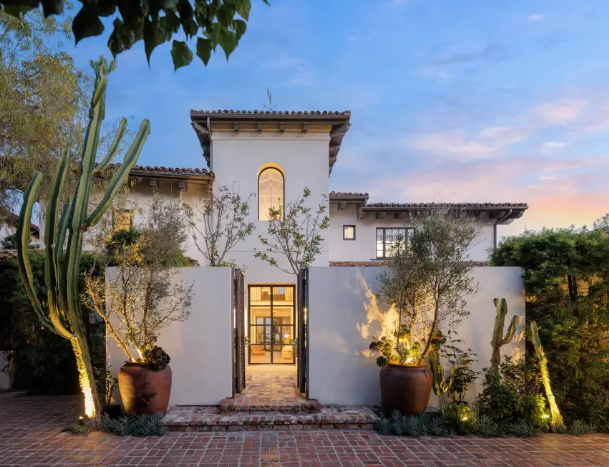 Построена около 1989 г., резиденцията в испански стил съчетава архитектурни детайли като сводести коридори, дървени греди и стъклени повърхности от пода до тавана с уникални дизайнерски елементи, включително таван с шарка на слънчогледи и кабинет с флорално осветление.