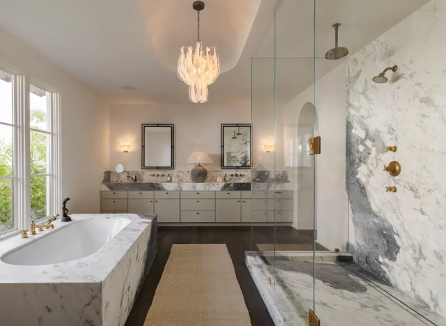 Къщата разполага с шест спални, осем бани, входно антре с двойна височина и частна киносалон.