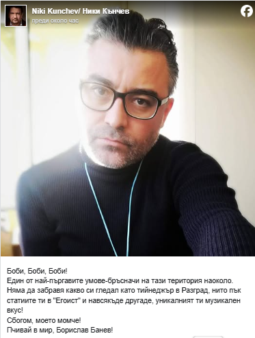Няма да забравя какво си гледал като тийнеджър в Разград, нито пък статиите ти в "Егоист" и навсякъде другаде, уникалният ти музикален вкус!