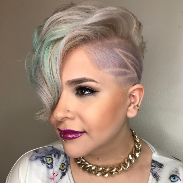 прическа с обръснато на къдрава коса