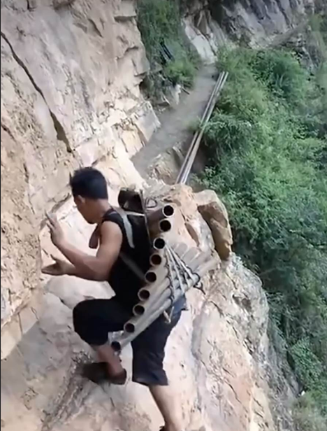 В продължение на десетилетия единствената връзка на селото с външния свят е била поредица от импровизирани стълби, направени от въжета и дървени клони, поставени по скалата. Жителите е трябвало да се изкачват и слизат по над 2000 стъпала, за да стигнат до града.