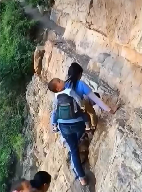 Това пътуване е не само изтощително, но и опасно по всяко време. Една грешна стъпка може да бъде фатална. Децата, още от ранна възраст, са били принудени да се изправят пред тази реалност, изкачвайки се всеки ден, за да ходят на училище. За възрастните това е пътят до пазара, болницата, до всяка основна услуга.
