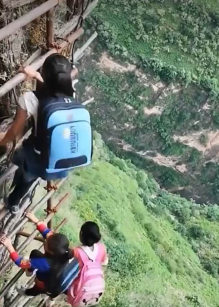 Село на ръба на пропаст: Децата ходят на училище на адска скала, всяка стъпка може да бъде последна-Видео