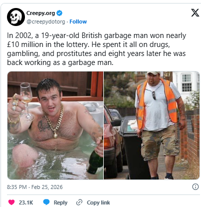 Само на 19 години, без диплома, стабилна работа и проблемно минало, животът на Майкъл Карол от Норфолк се променя за една нощ, когато печели 11,5 милиона евро от лотарията през 2002 г. Това е първият му билет, на стойност само около едно евро.
