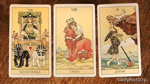 Арканът „Колесница“ подсказва, че след период на размисъл е време да се продължи напред. За Девите тази карта представлява самообладание, воля и способност да се поеме контрол над ситуацията, дори ако съмненията продължават. Тя е благоприятна за въпроси, изискващи пробив, решителност, пътуване, формализиране на планове и конкретни действия. Важно е да се избере една посока и да не се хаби енергия за ненужно колебание.