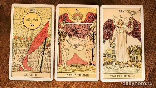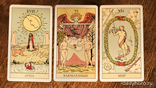 Картата „Влюбени“ подсказва, че на преден план ще излязат въпроси, свързани с чувствата, взаимоотношенията и избора на път – не само в любовта, но и във всички области на взаимодействието. Рибите могат да очакват съдбовни срещи, признания, хармонизиране на съществуващи взаимоотношения или вземане на важни решения за бъдещия ход на живота им с любим човек. Това време трябва да бъде посветено на искреност, грижа и подкрепа, както и на способността за намиране на компромиси. По въпроси, свързани с екип или партньорство, ще се постигне пълно единодушие.