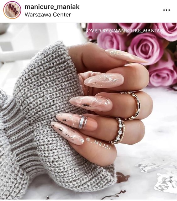 Нежен маникюр в цвят розов кварц (Снимки):