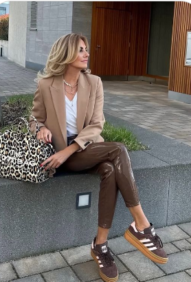 Розовите маратонки вече не са просто сладък детайл - те са се превърнали в истински моден акцент. Този нюанс напомня на сладолед или дунапренени бонбони и изглежда едновременно забавен и елегантен. В комбинация с бели или по-тъмни детайли, те създават баланс между романтичен и градски стил. Идеални са за градски разходки или кафе с приятели.