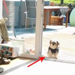 Това кученце стои до вратата,...