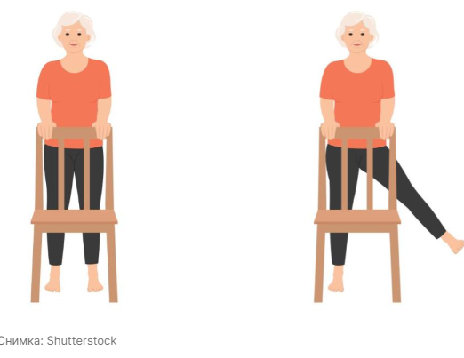 Застанете изправени, леко облегнати на стена или облегалка на стол.