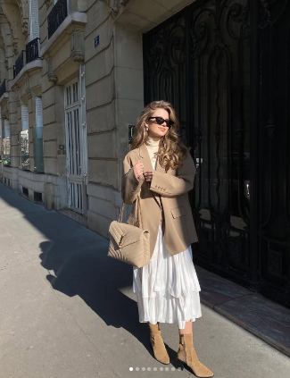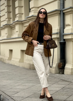 Кожено сако с четкана текстура е една от ключовите дрешки на тази пролет, тъй като перфектно съчетава елегантност и непринуден вид. Неутралните нюанси като бежово, светлокафяво или пясъчно се съчетават добре с дънки, както и с по-леки рокли и поли. Такова сако е перфектният избор за преходния период, когато сутрините са все още малко хладни, но следобедите вече са приятно топли.