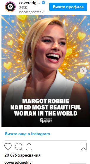 Името на Марго Роби през последните седмици набра значителна популярност в социалните мрежи, подхранвана от графики и публикации, които внушават, че платформата Ranker е направила официално и окончателно обявяване, поставящо актрисата начело в световна класация за красота.