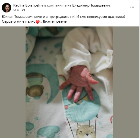 Министърът на туризма Мирослав Боршош е станал дядо. Щастливата новина съобщи дъщеря му, актрисата Радина Боршош.