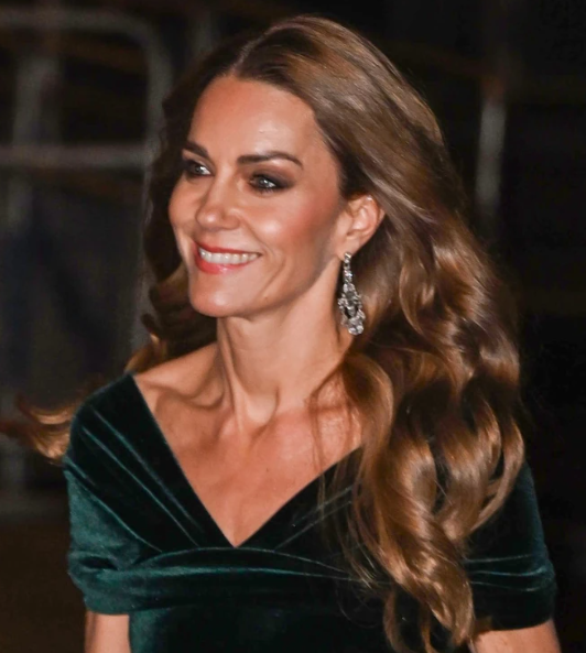 Тя носеше рокля от немската модна къща Talbot Runhof и комбинира луксозния модел с красиви обеци Greville от известната марка Cartier . Това бижу беше обожавано от кралица Елизабет II , така че Кейт Мидълтън показа колко много уважава бившата британска владетелка тази вечер.