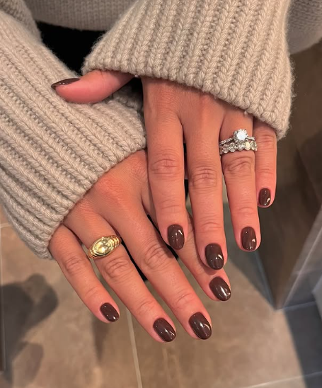 Кафявите тонове, от друга страна, носят топлина и неутралност, които подхождат на всеки стил. От лате нюанси до наситен шоколад, кафявото е високо в класацията на популярността тази зима. Неговата адаптивност позволява лесно съчетаване с тоновете на кожата – по-студените кафяви цветове подхождат на по-светлите тенове, докато по-топлите нюанси с червеникави подтонове подхождат на по-тъмните тенове. Матовото покритие допълнително подчертава естествената им красота.