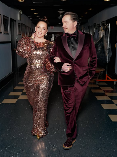 Облечена в елегантен черен кадифен гащеризон с блестящи детайли на раменете и впечатляващ сребърен флорален колан, 55-годишната Мелиса демонстрира по-слабата си фигура, след като свали близо 45 кг. Гащеризоните перфектно следваха фигурата ѝ, така че не е изненадващо, че външният ѝ вид се превърна в основна тема на вечерта.
