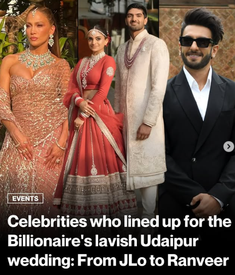 Сватбата в Индия, проведена в двореца, където е сниман Джеймс Бонд, остави света без дъх. Дженифър Лопес също така участва на пищната сватба на Нетра Мантена, наследницата на фармацевтичната империя, и IT предприемача Вамси Гадирадж в известния хотел Thai Lake Palace в Удайпур.