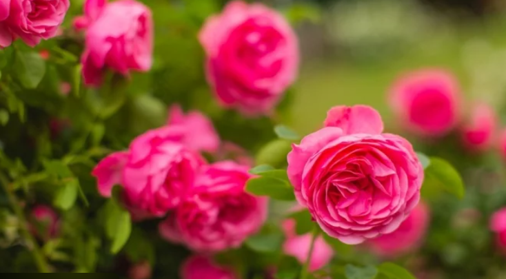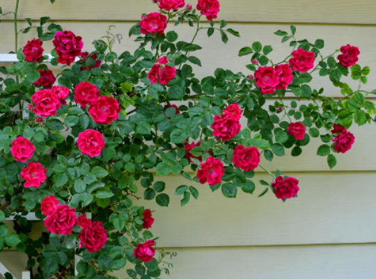 Подходящи сортове: „Gertrude Jekyll“ за бордюри, увивни рози за стени и огради